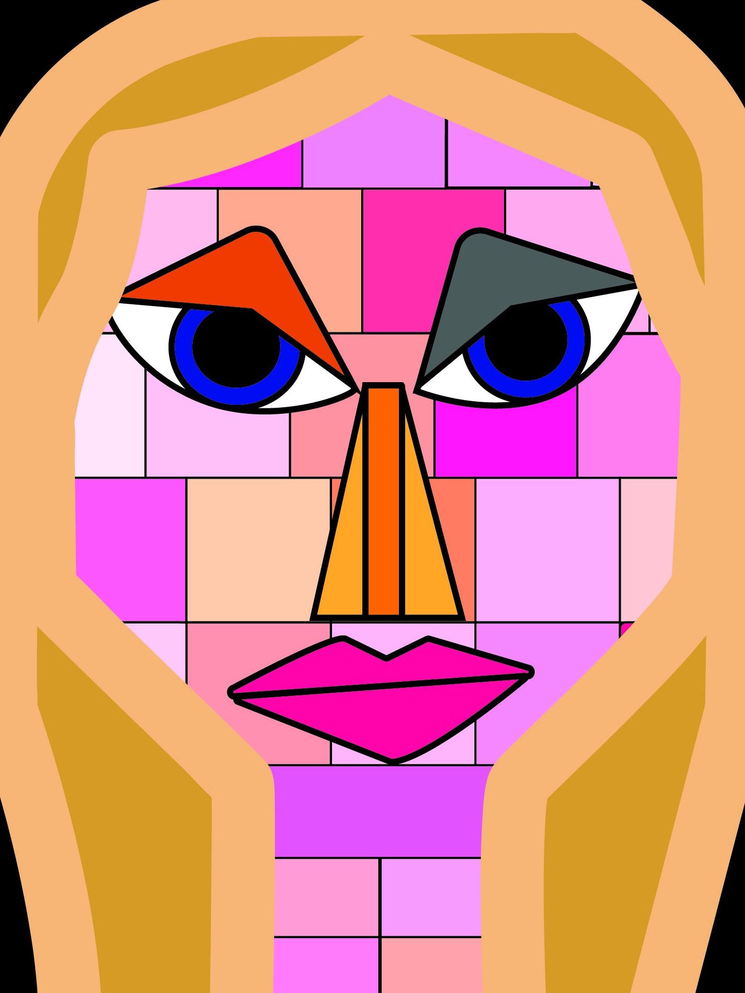 The two artists which inspired this abstract portrait are Paul Klee (Senecio – Head of a Man) and Lorenzo Gonzalez Sanachez (Helena). Both artists use shapes for the facial features which I have also incorporated into my design. A cubism design was used for the skin tone with various pink and peach shades. The eyes and mouth have also been made using the ellipse tool and edited with both selection tools for a more realistic shape. The nose was made using the rectangle tool, as well as the bridge of the nose. Bold colours have been used throughout to create a more extravagant and striking portrait.