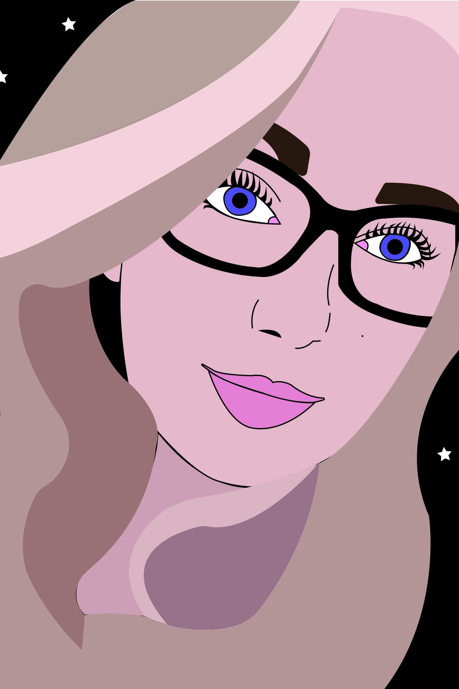 This portrait comes as a simplistic design with solid block colours and strong black outlines. However, despite it not being overly detailed or having shading/blending of colours, it conveys a beautifully artistic likeness to me. The key features of my face all have just enough uniqueness to them to make it very recognizable and eye catching. The contrast of the bright colours with the blue of the eyes, pink of the lips, and strong black lines of the glasses really stands out against the more faded skin and hair colours. Whilst the hair itself pops due to the bright highlight, working against those lower shadows to give it a bit of depth. It really feels like it has a nice balance and would work perfectly as my avatar next to a written piece, or something similar. The black background with stars is simple and is there to signify my love of the night.
